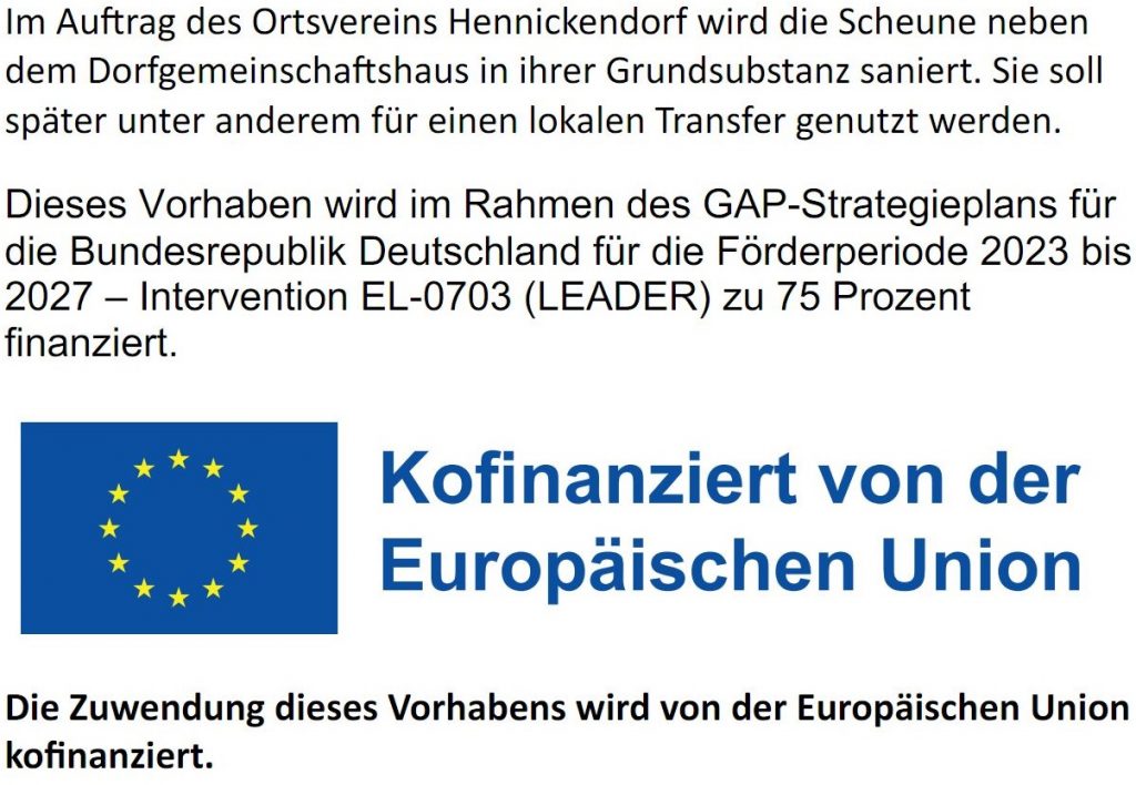 Erhalt historische Fachwerkscheune Hennickendorf (Dach,Fachwerk, Gefache)